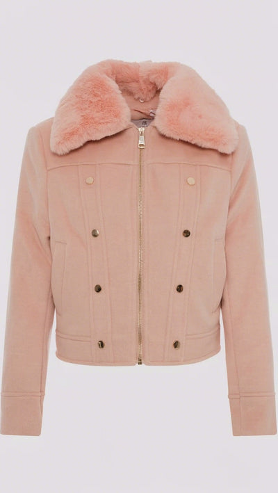 Cropped Bomber with Faux Fur Collar